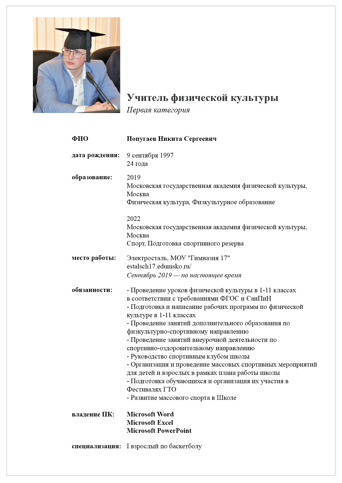 Вакансия учителя физической культуры отсутствует.